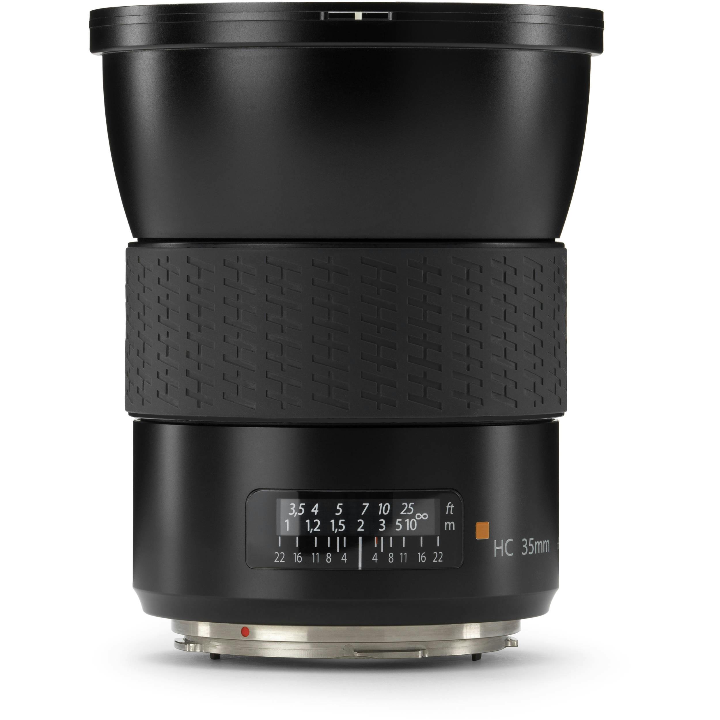 Dedicated to aerial photography, this specialized version of the HC 35mm f/3.5 Lens from Hasselblad is a wide-angle prime offering an 89° angle of view. Differing from the standard lens range, this lens features a secure locking mount to significantly reduce unwanted vibrations and flexing on the lens-camera interface, and the rigid mount also ensures the image and sensor planes remain perfectly parallel at all times. Additionally, this lens has a locked focus position at infinity as well as dedicated firmware to close the central shutter and aperture mechanism to their working positions when power is applied to the camera system.