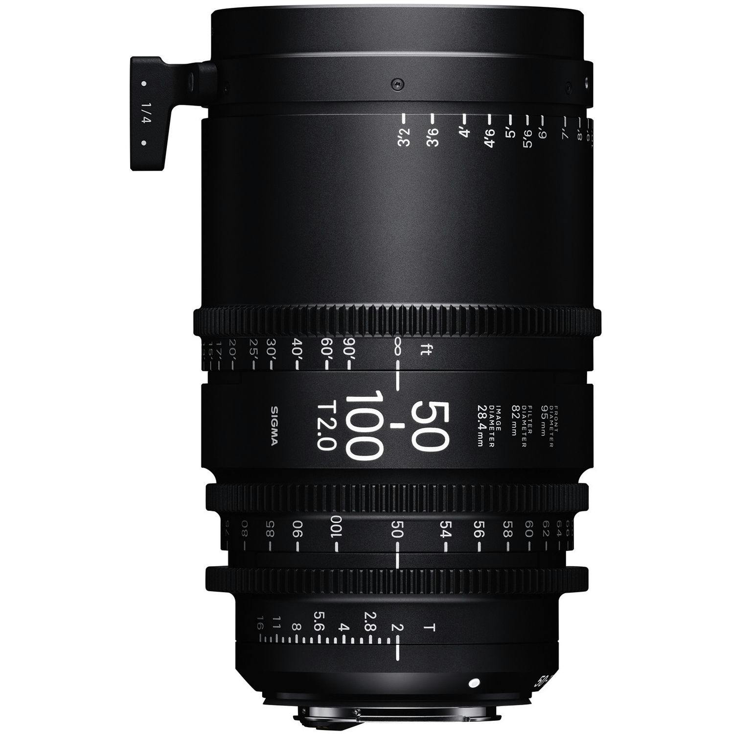 The Sigma 50-100mm T2 Cine High-Speed Zoom Lens (Feet) with a Canon EF mount provides an image circle that covers Super 35mm-sized sensors. It features a maximum T-stop of 2, and the aperture does not ramp over the zoom range. It can be adapted to fit Canon RF and Sony E Mount. It shares common lens gear positions with the other lens in the Sigma High Speed Zoom lineup, which makes for rapid lens changes.