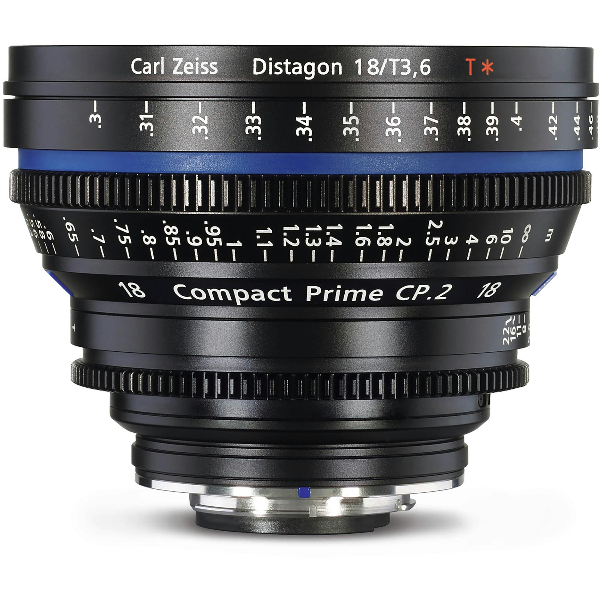 The ZEISS 18mm/T3.6 CP.2 Compact Prime Cine Lens with E Mount is an 18mm fixed focal length lens with a flexible design compatible with separately available interchangeable mounts for PL, EF, F, E and MFT mounts, allowing you to use the cine lens with movie cameras and HDSLR cameras. The lens covers the ANSI Super 35 and Normal 35 image formats, and is suitable for HDSLRs with APS-C and APS-H format sensors.