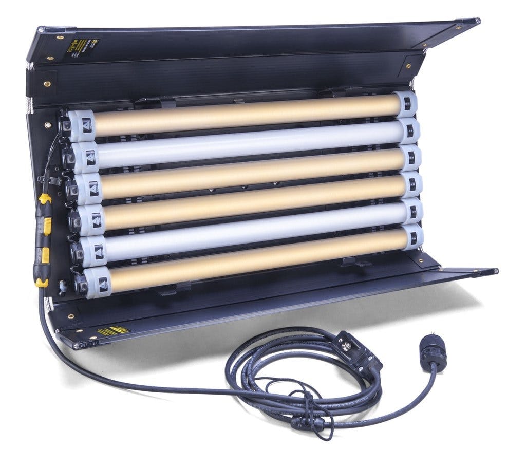 The modified Kino-Flo/Quasar Fixtures add 50% more lamps into the traditional Kino-Flo Remote Fixture Shell. Utilizing the Q-Blocks mounting clips and a bit of elbow grease, it ables to pack 6 linear LED lamps into a 4 Bank shell, 3 lamps into a Double shell and 2 lamps into the Single for some extra punch. With the Q-LED Crossfade, tune the lamp from our beautiful 2000° Kelvin Candle Light all the way through to our 6000° Kelvin Overcast Daylight. Whether lighting actors or lighting environments, the versatility is undeniable. Light backings with unprecedented energy efficiency. String overhead above diffusions for the perfect sky.