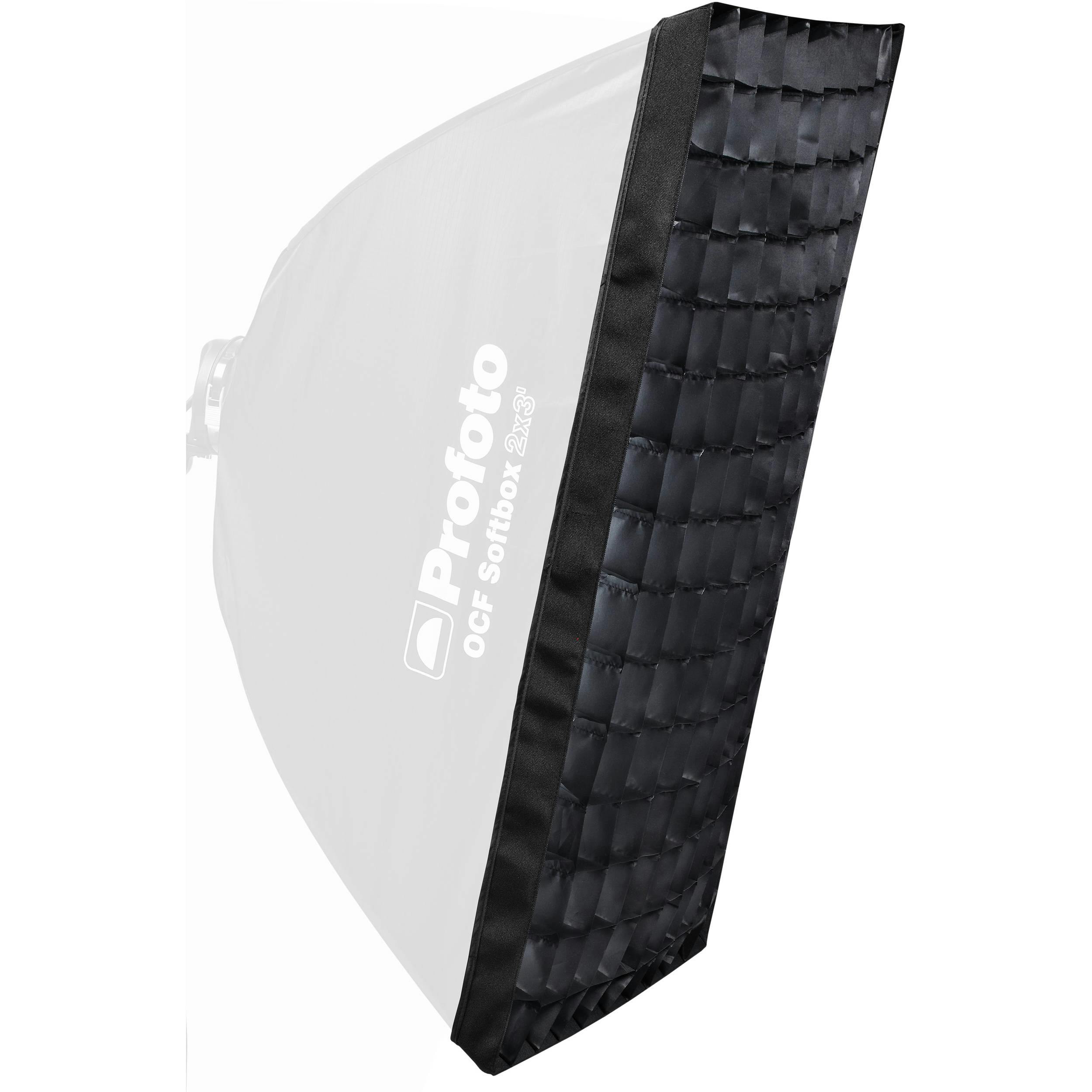 This 50° Profoto Softgrid for OCF Softbox tunnels the light of the 2x3' softbox forward while it helps control spill and directs the light only where you want it. The grid has a clever design for mounting that entails slipping an outer skirt over front face of the softbox, thus eliminating light leaks found in some units using touch fasteners. The fabric folds down to a fraction of its open size or can be folded while mounted along with the softbox.