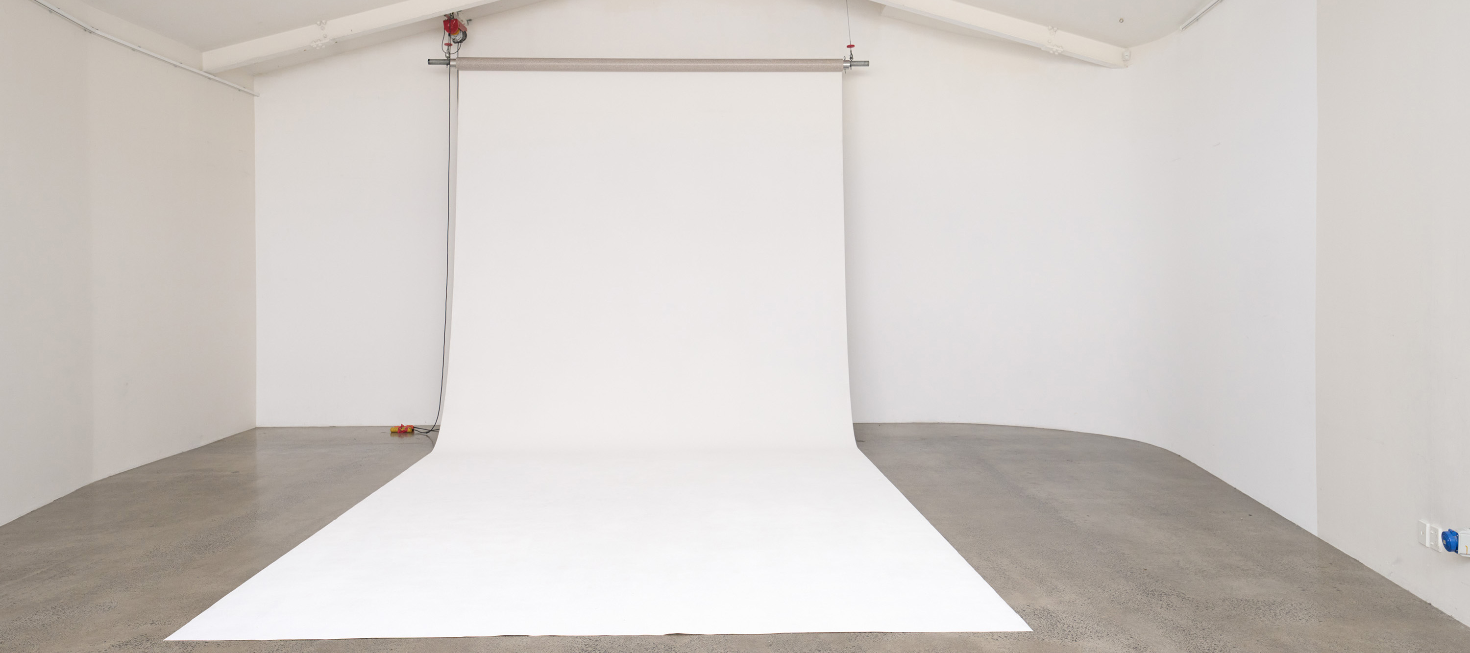 Studio 2 is 11m x 8m x 5m (h), excluding the changing and kitchenette areas. This studio comes with two ceiling mounted winches, allowing for an array of backdrops to be raised. This studio also comes with option of a vinyl cyc.