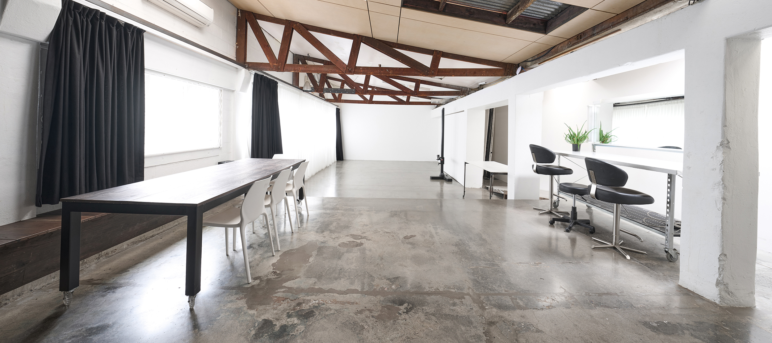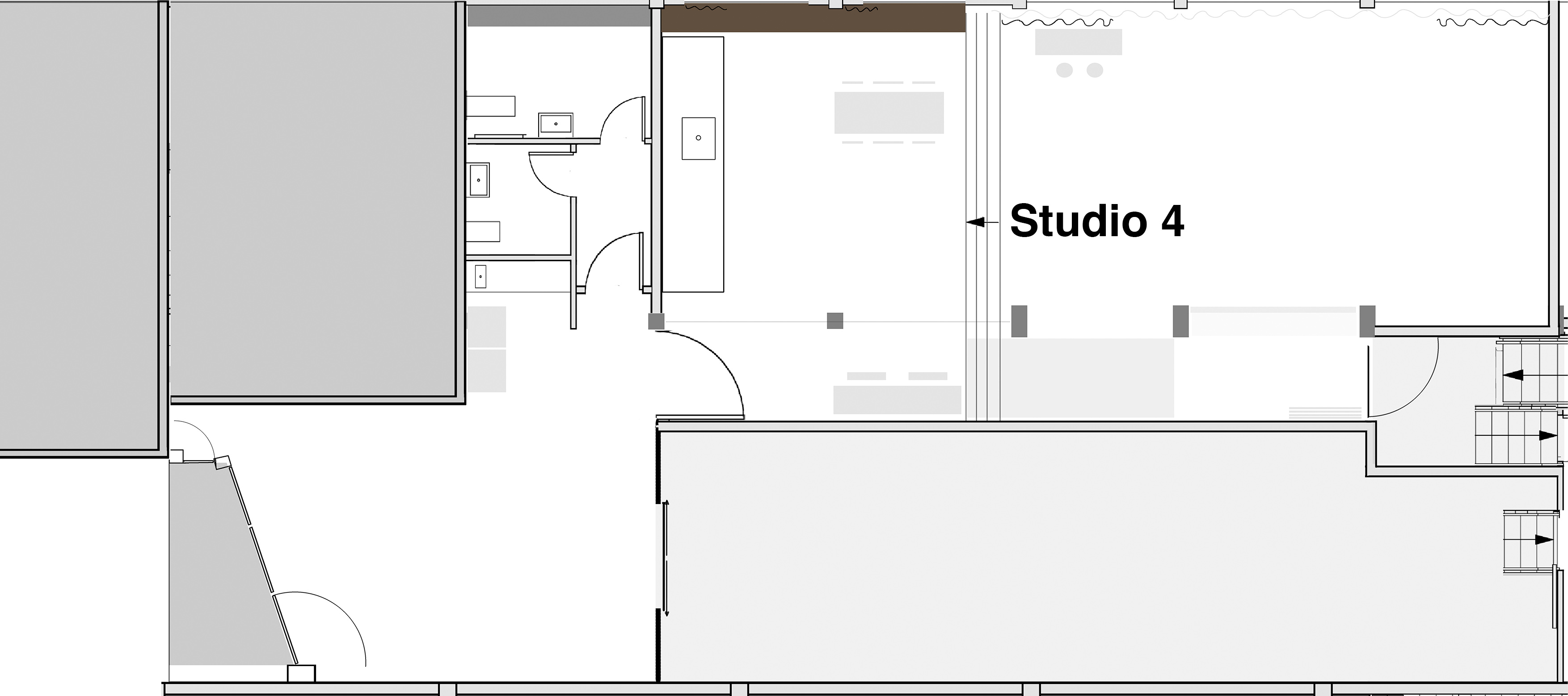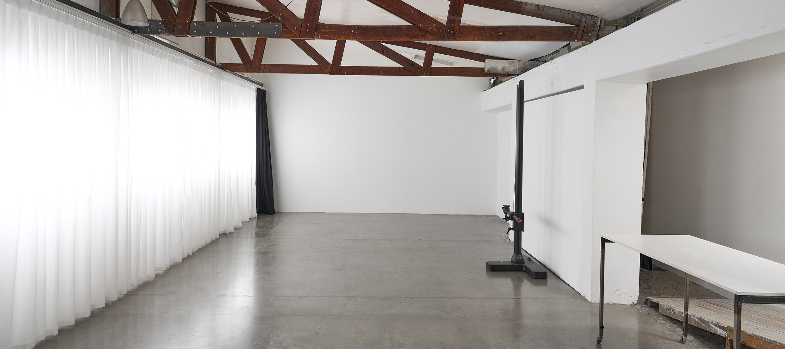 Studio 4 is 15.5m x 7m x 3.2m high on low side graduating to 4.1m high. Our newest studio, located right next door to the other three, offers the option of beautiful all day sunlight streaming through long side windows (weather permitting), diffused light through the sheer curtains. Alternatively drawing the black curtains can control the light or black out the studio.